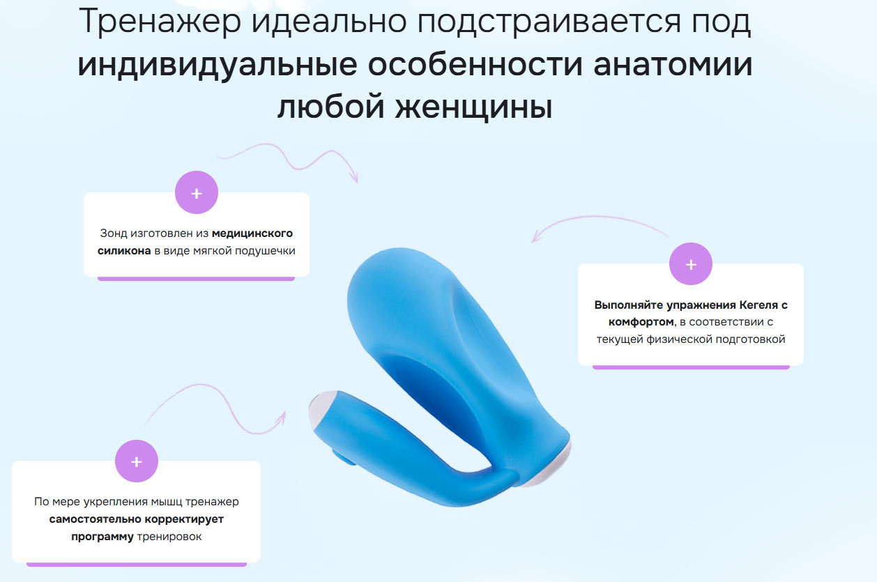 kGoal — это современный интеллектуальный тренажёр, разработанный для женщин, которые заботятся о здоровье и хотят улучшить качество интимной жизни. Устройство автоматически подстраивается под индивидуальную анатомию, а через бесплатное приложение на iOS или Android предлагает персональные программы тренировок. Вы получаете мгновенную обратную связь, что делает упражнения максимально эффективными.